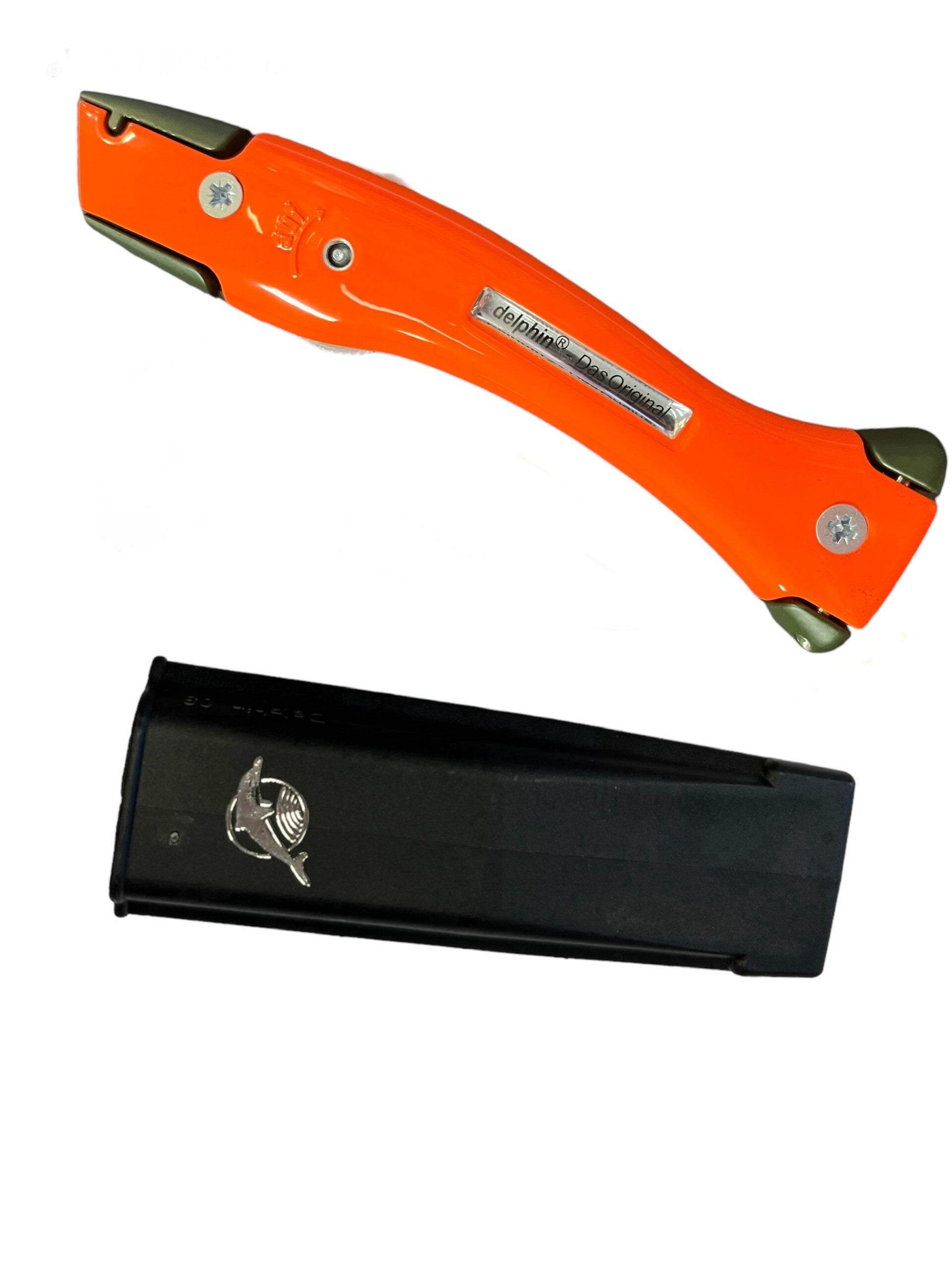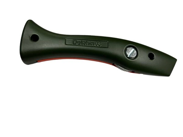 Delphin mes Orginal olijfgroen signal oranje inclusief houder en mesje